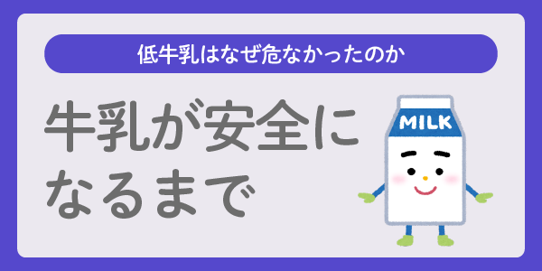 糖とタンパク質が豊富な牛乳は、結核・ジフテリア・腸チフスなどの感染症や、大腸菌・サルモネラ・リステリアといった細菌が繁殖しやすい環境だったのです。